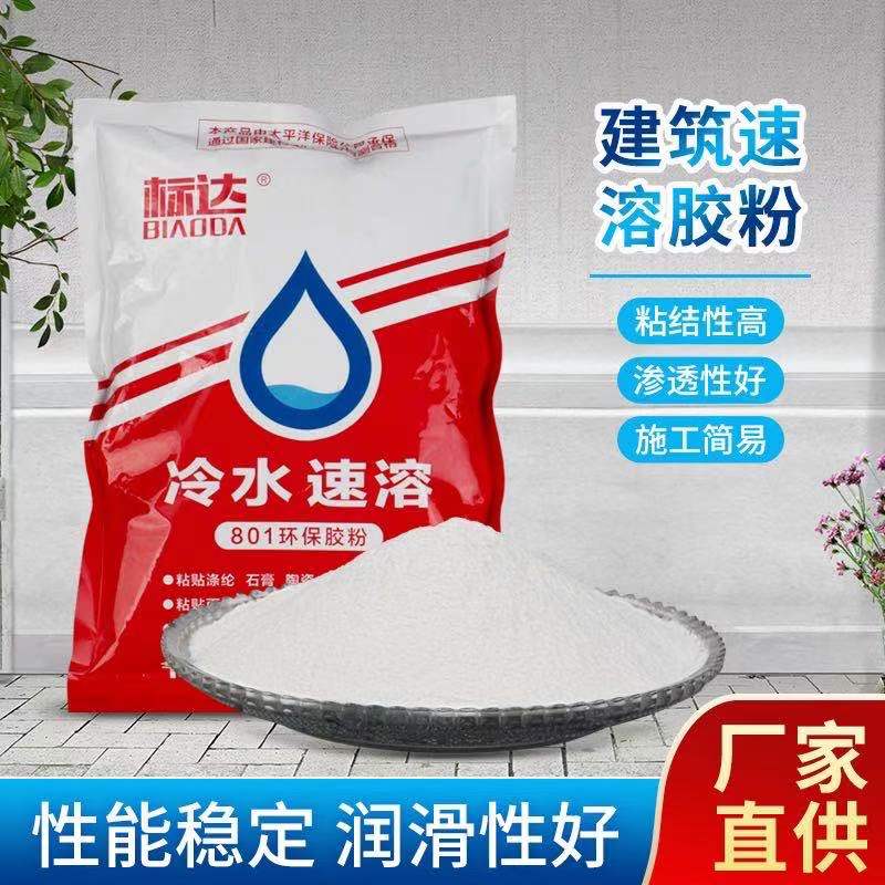 冷水速溶801膠粉是一種白色粉末,只要幾分鐘就能制成高濃度不分層801膠水.